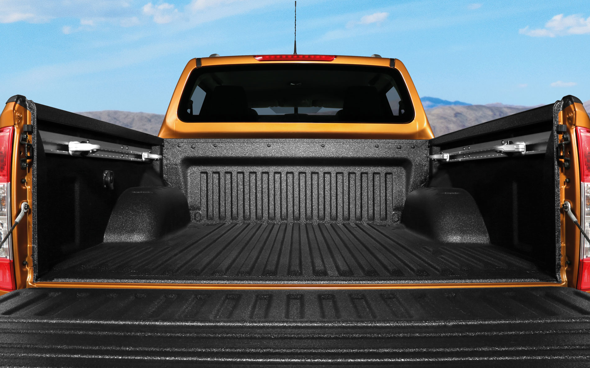 BATEA. Sistema con canales y ganchos de sujeción movibles y ajustables, que te permiten asegurar la carga dentro de la batea, también equipada con un tomacorriente de 12V.